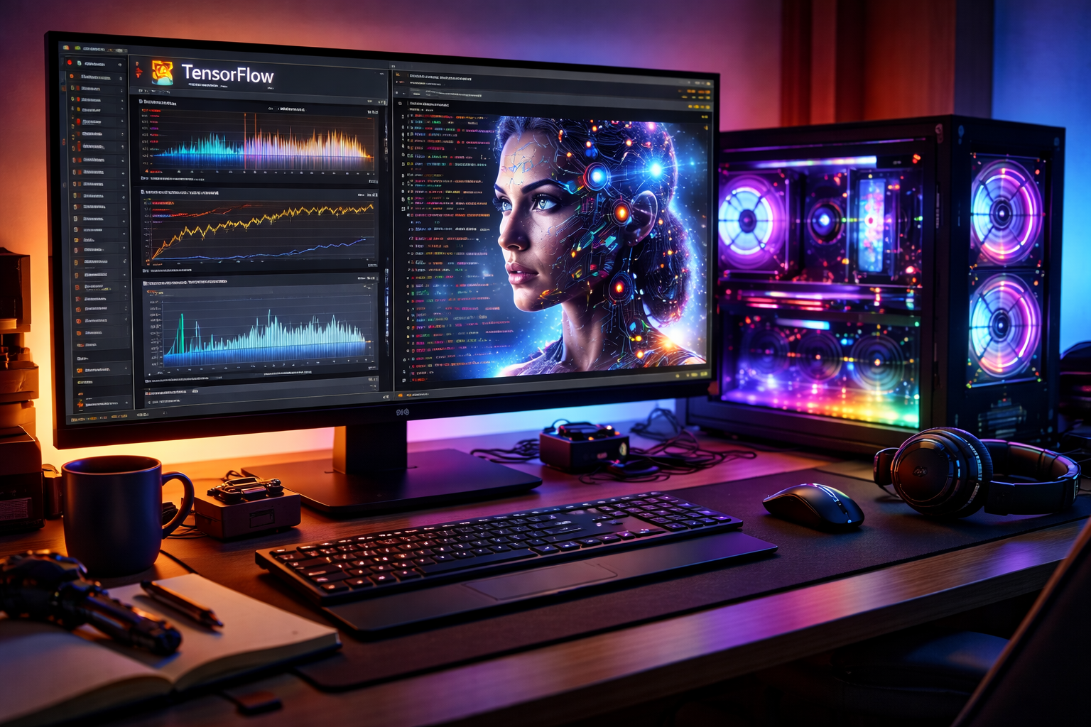 En MyPc Pro diseñamos equipos a medida para entornos de inteligencia artificial y machine learning, optimizados para trabajar con frameworks y herramientas como PyTorch, TensorFlow, CUDA, Jupyter, Docker o Stable Diffusion, aprovechando al máximo el rendimiento de la GPU, la memoria y el almacenamiento de alta velocidad.
