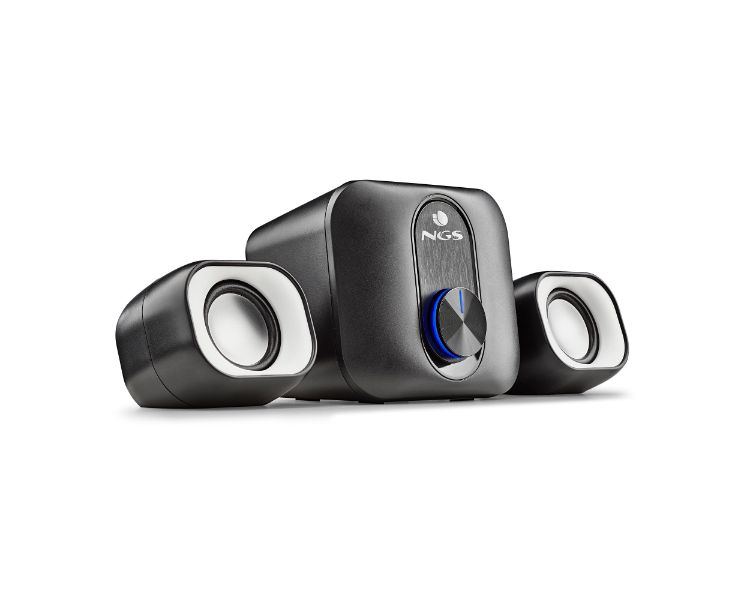 Sistema de sonido Multimedia estéreo 2.1 con máxima potencia de 20W.. Los altavoces pueden colocarse en cualquier lugar gracias a su diseño compacto y portátil. Son un accesorio perfecto para cualquier escritorio.. Su línea minimalista y elegante es ideal para casas modernas, oficinas y espacios de trabajo.. Compatible con entradas de audio: puedes usar el cable de entrada de audio de 3,5 mm para reproducir contenido desde tu PC, Mac u otros dispositivos simultáneamente.. Compatibilidad: funciona con cualquier PC/portátil.. Fácil acceso: funciones on/off y de volumen integradas en un solo botón en la parte delantera del subwoofer.. La caja del subwoofer y los altavoces están fabricados en materiales de alta calidad para proporcionar mayor calidad de sonido.. Alimentación por USB y una entrada AUX universal de 3,5 mm para poder conectar tus dispositivos de audio. El altavoz elimina la necesidad de un enchufe de pared mientras duplica los graves con su subwoofer externo.. Ofrece un sonido envolvente 360º.. Instalación »Plug and Play». . Especificaciones:. . Potencia de salida de pico: 20W. Respuesta de frecuencia: 150Hz~20kHz. Potencia de entrada: DC 5V/1 A (USB). 5/N Ratio: =30dB. Control de volumen: Sí. RMS: 11W (5W + 3W x2). Longitud de cable: 1,2m. Aux In jack 3,5mm: Sí