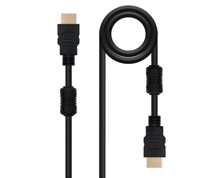 Cable HDMI alta velocidad con Ethernet (V1.4) con conector tipo A macho en ambos extremos. Doble ferrita para evitar pérdidas de datos e interferencias electromagnéticas (EMI).. . Especificaciones:. . Conectores de alta calidad blindados en oro. Múltiple apantallamiento para la máxima reducción de posibles interferencias. Fabricado con conductores de cobre (cobre OFC-Oxygen Free Copper- 99,99%) de alta calidad que garantiza la máxima calidad de transmisión.. Ancho de banda hasta 340MHz (10,2Gbps). Alta velocidad, red bidireccional con velocidades de hasta 100 Mbps.. Soporta funcionalidad de canal de retorno de audio.. Soporta resoluciones de video de 4K x 2K (3840×2160 24Hz/25Hz/30Hz; 4096×2160 24Hz) y 1080p.. Permite 3D sobre HDMI cuando se conecta a dispositivos HDMI.. Espacios de color adicionales (sYCC601, RGB & YCC601). Tasas de refresco hasta 120Hz frame.. Soporta DOLBY True-HD y DTS-HD.. 8 canales de descompresión de audio digital en tasa de 192KHz con 24bits.. Soporta protección de contenido de alto ancho de banda digital.. Longitud: 3.0 metros. Color: negro. NormativaS: RoHS. Test de Funcionamiento: 100% testado