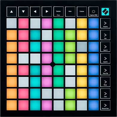 CONTROLADOR PAD DAW Controlador de cuadrícula para Ableton Live. 64 pads RGB que dan un reflejo perfecto de la sesión de Ableton Live y hacen que sea más fácil que nunca ver los clips. Integración con Ableton Live lanza rápidamente clips y escenas con solo pulsar un botón. Controles de paro, muteo y preescucha que facilitan y hacen que las interpretaciones sean más táctiles y que no sea necesario el ratón. Tres modos Custom para personalizar mapas y controlar cualquier cosa MIDI fácilmente usando Components. Modos Dynamic Note y Scale que permiten tocar sin esfuerzo líneas de bajo, melodías, acordes y leads perfectamente integrados. Launchpad X incluso sabe cuándo estás tocando la batería y muestra tu rack de batería en la cuadrícula. Sensible a la velocidad y la presión: toca sus instrumentos y dispositivos de forma expresiva con los 64 pads RGB sensibles a la presión y a la velocidad.